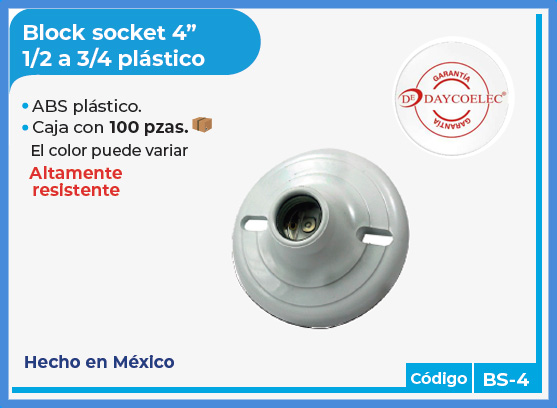 - Block socket 4" 1/2 a 3/4 plástico